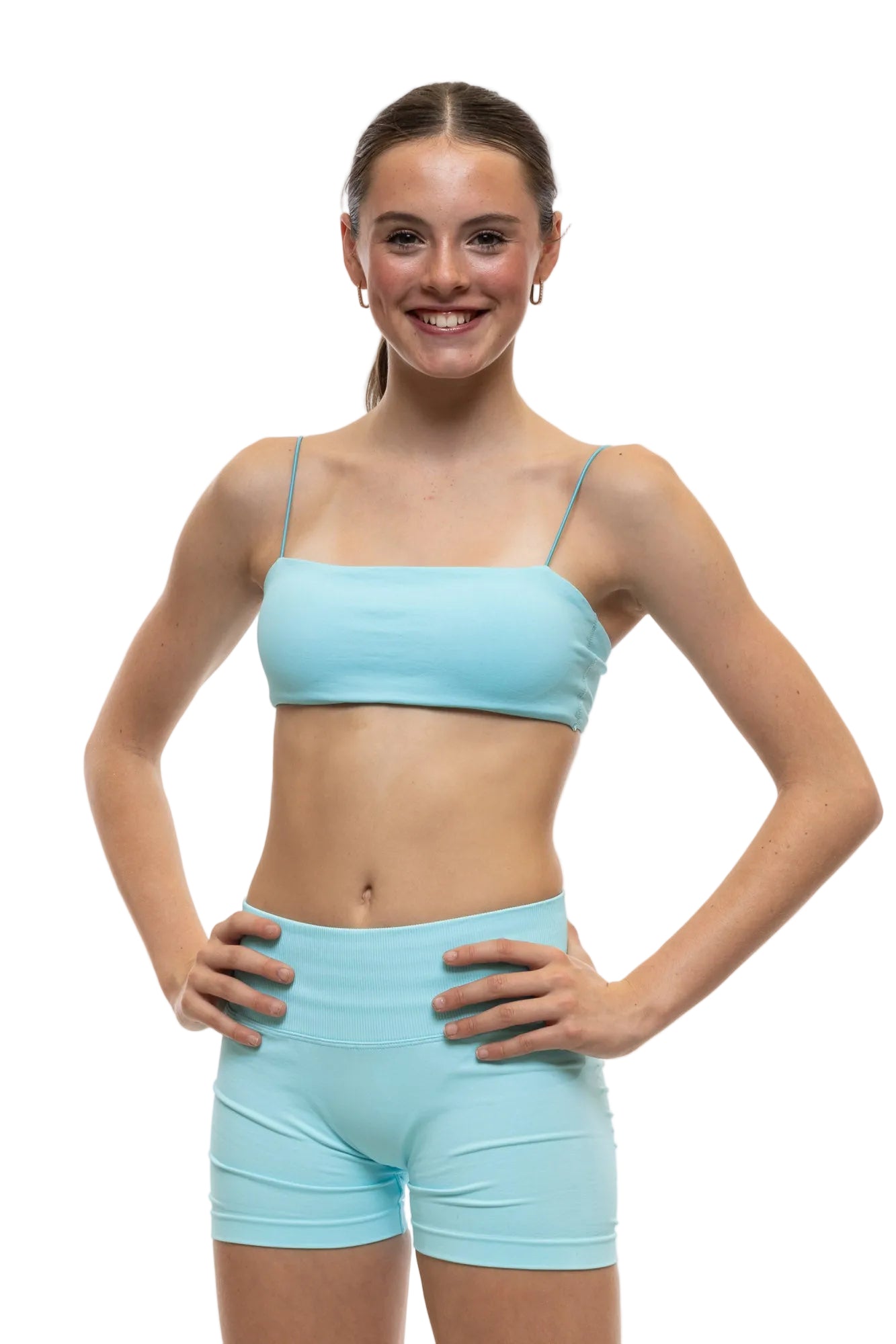 The Angel Crop features delicate, look-alike spaghetti straps for a light, feminine style. Pair it with the Angel Shorts for a perfectly coordinated set that’s soft, comfortable, and designed to move with you.