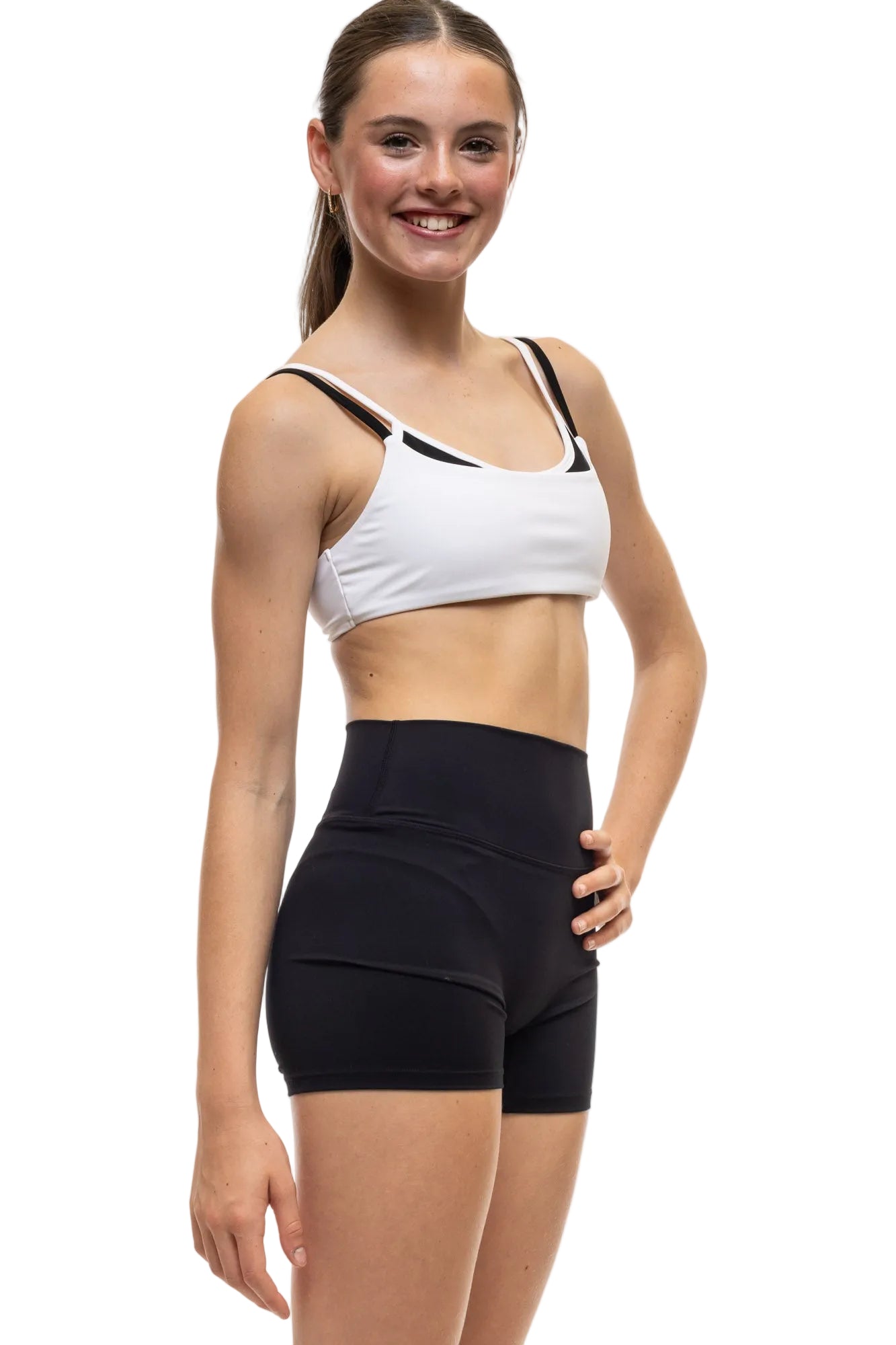 The Edge Crop gives the illusion of two crops in one, with a bold layered look that stands out while staying sleek, comfortable, and stylish.