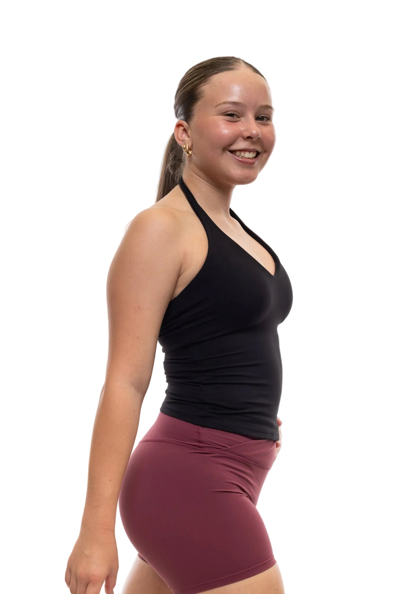 The Halter Tank is crafted from soft, comfortable fabric and designed to move with you. Featuring a built-in bra with removable cups for adjustable support, it offers the perfect balance of style and function. Ideal for dance, workouts, or everyday wear, this versatile staple is made to keep up with you wherever the day takes you.