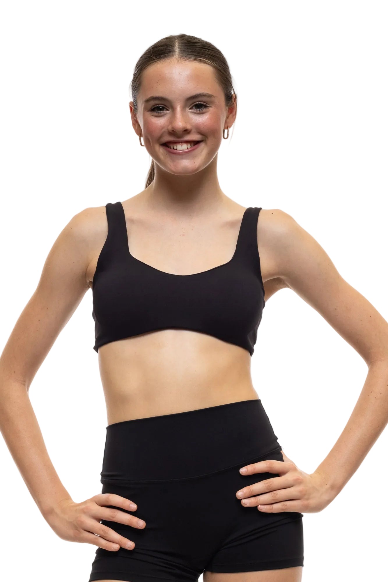 Meet the Web Crop — sleek, supportive, and made to move. Featuring statement web-style back straps and soft, high-stretch fabric, it delivers all-day comfort and standout style for every class, rehearsal, or workout.